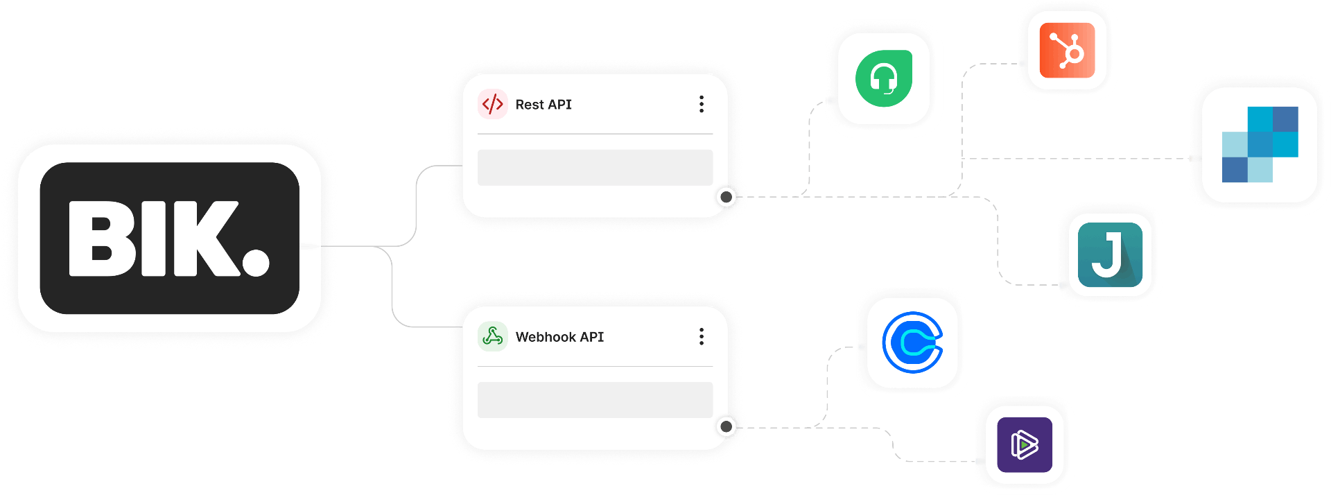 BIK is an open API platform, connect using webhooks, rest API blocks & more